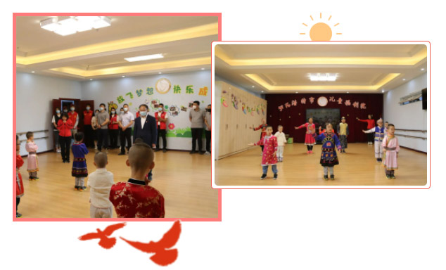 興泰建設(shè)集團(tuán)呼和浩特區(qū)域黨支部、興泰職業(yè)培訓(xùn)學(xué)校黨支部及各聯(lián)合單位將精心準(zhǔn)備的愛心禮物交給孩子們。為表達(dá)對(duì)各黨支部志愿服務(wù)隊(duì)的感謝之情,福利院的兒童代表為大家表演了手語蹈《感恩的心》。