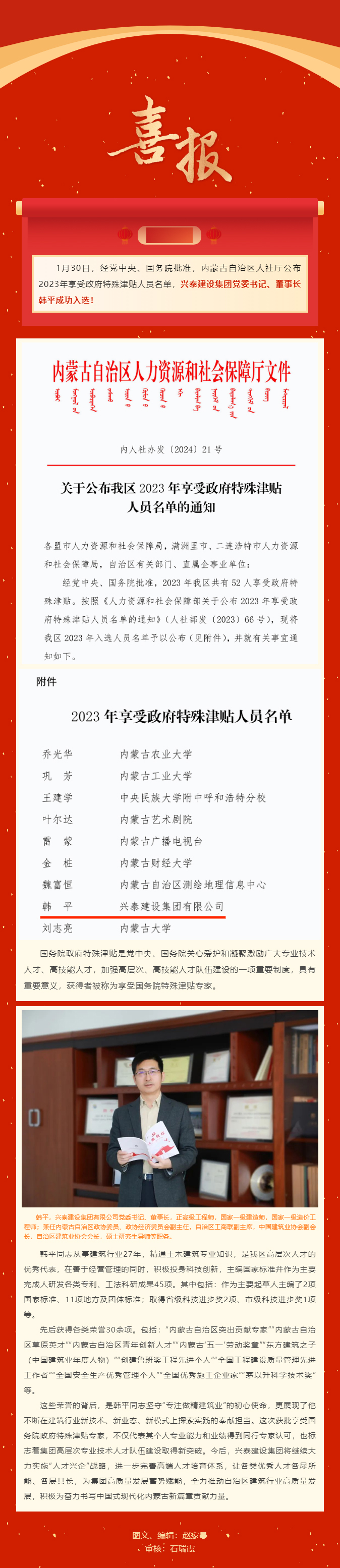 國務(wù)院政府特殊津貼!興泰建設(shè)集團(tuán)+1!