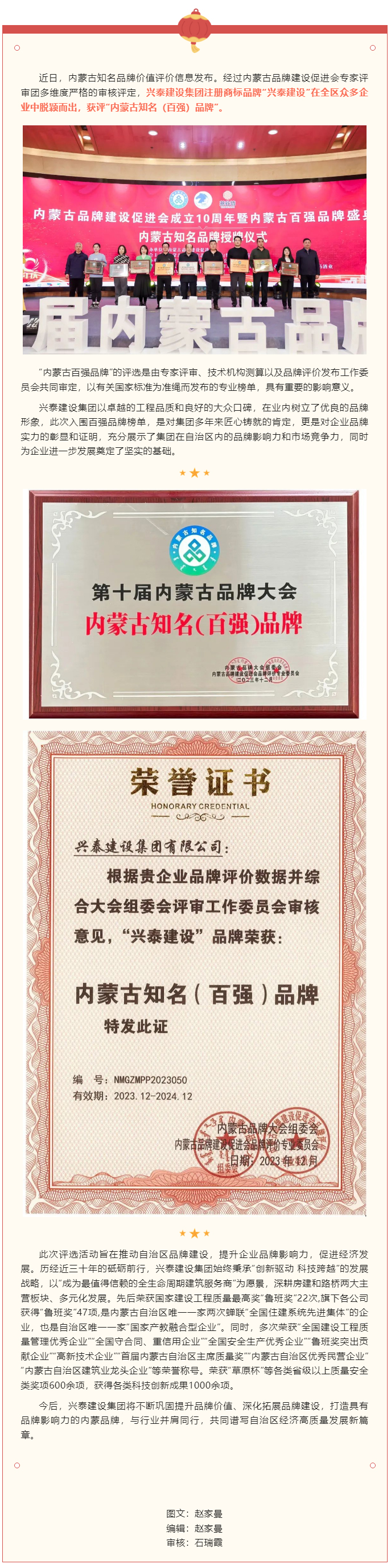 “興泰建設(shè)”喜獲內(nèi)蒙古知名(百?gòu)?qiáng))品牌榮譽(yù)